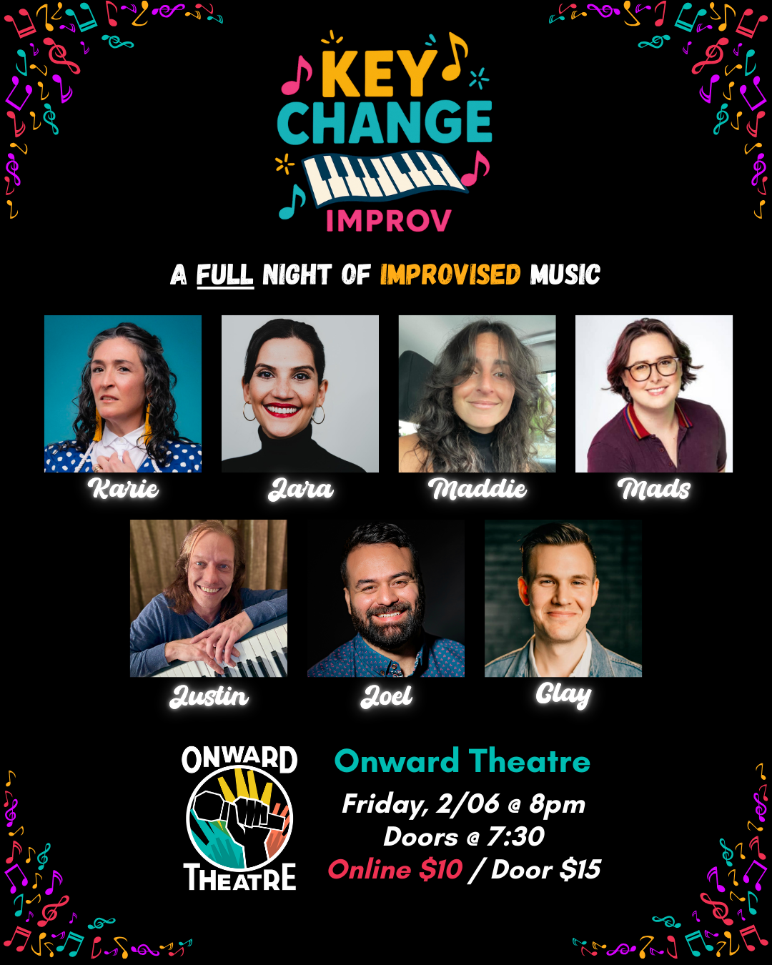 - Doors open at 7:45 - Please note there are three flights of stairs up to the Onward Theatre Community Collaborative at Academy Lofts - BYOB - Please Park on Mayland St. or Catherine Street - There is signage directing you to the Onward Theatre Space, please use the entrance off Mayland Street - Onward will have water, soft drinks, and light snacks for sale