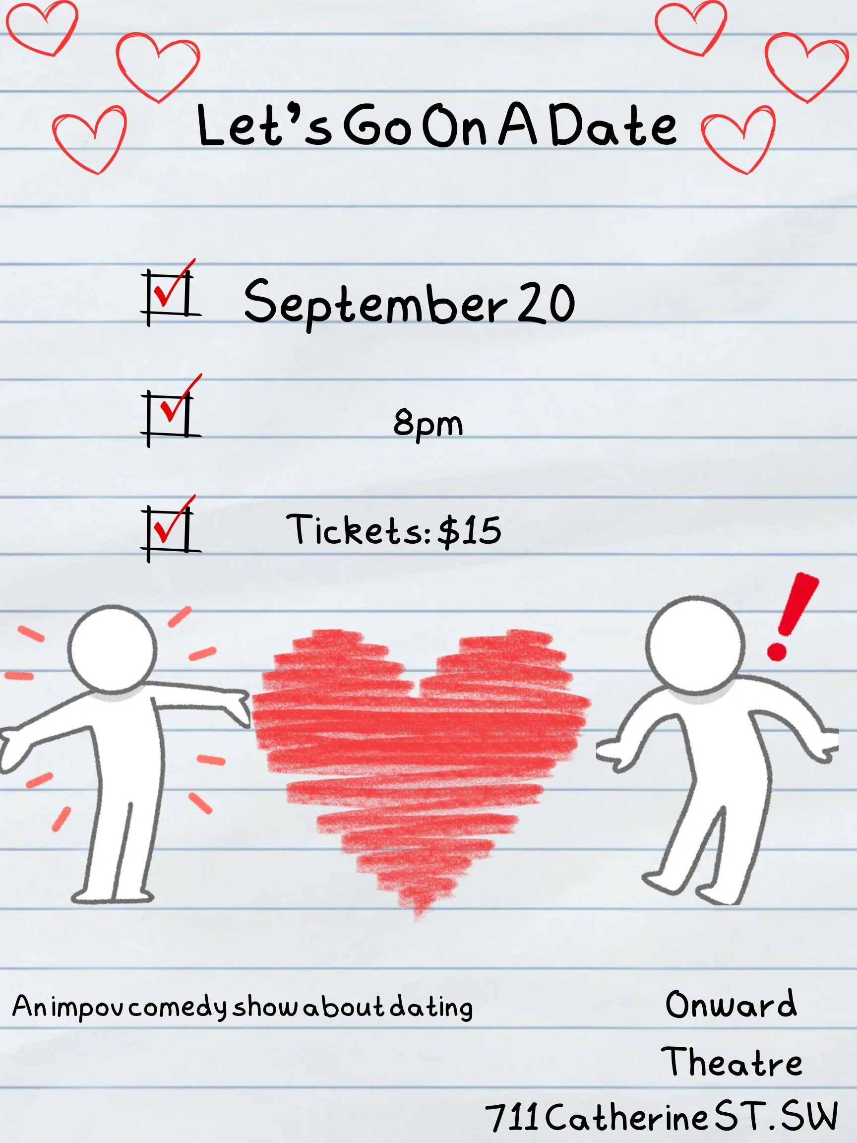 After a brief intermission, the show will delve into the heart of dating experiences with a series of improv scenes, inspired by audience suggestions or stories from a monologist. Whether it's the good, the bad, or the downright weird, Let’s Go On A Date promises to bring the dating world to life in a way you've never seen before.