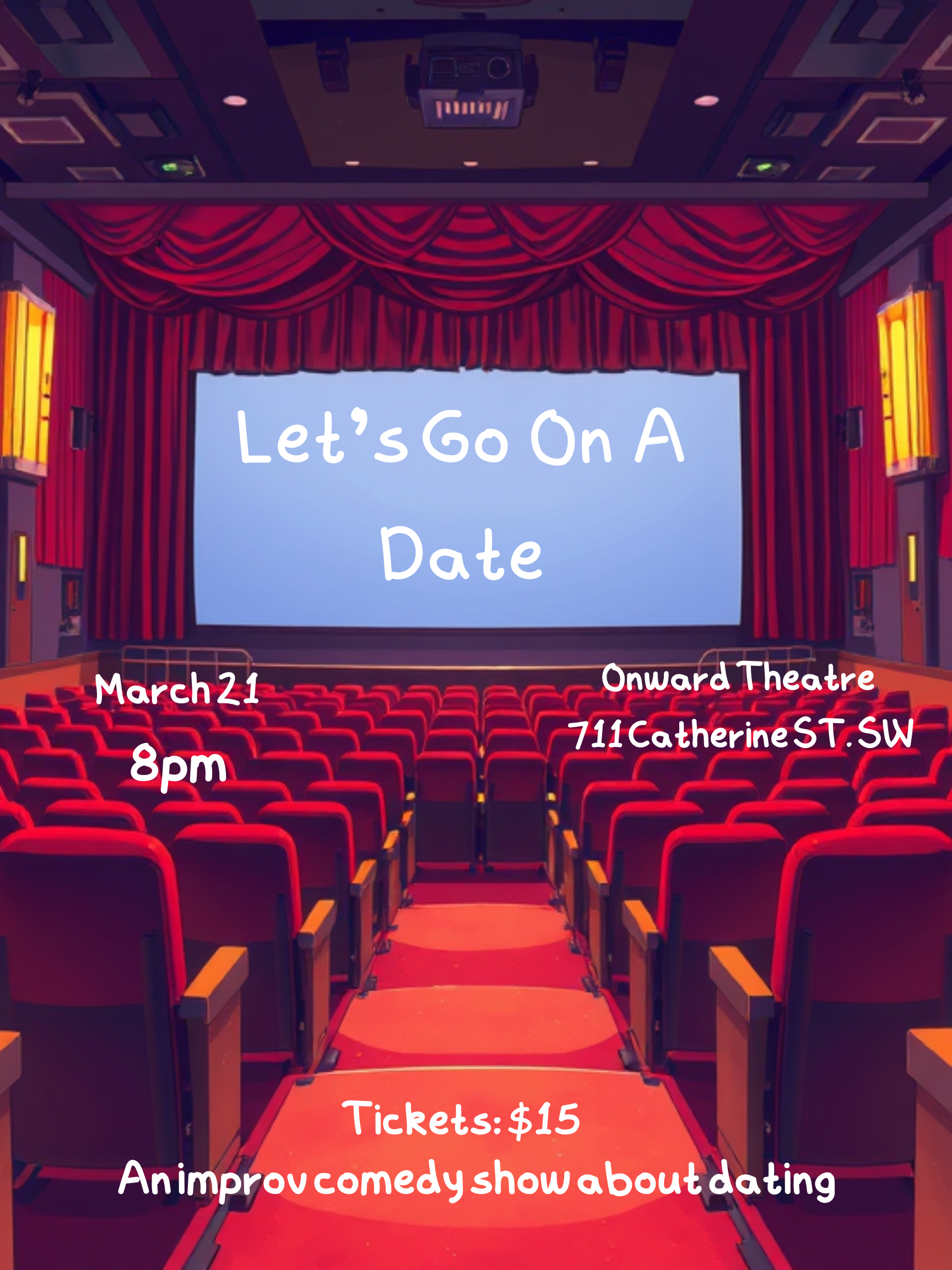 After a brief intermission, the show will delve into the heart of dating experiences with a series of improv scenes, inspired by audience suggestions or stories from a monologist. Whether it's the good, the bad, or the downright weird, Let’s Go On A Date promises to bring the dating world to life in a way you've never seen before.